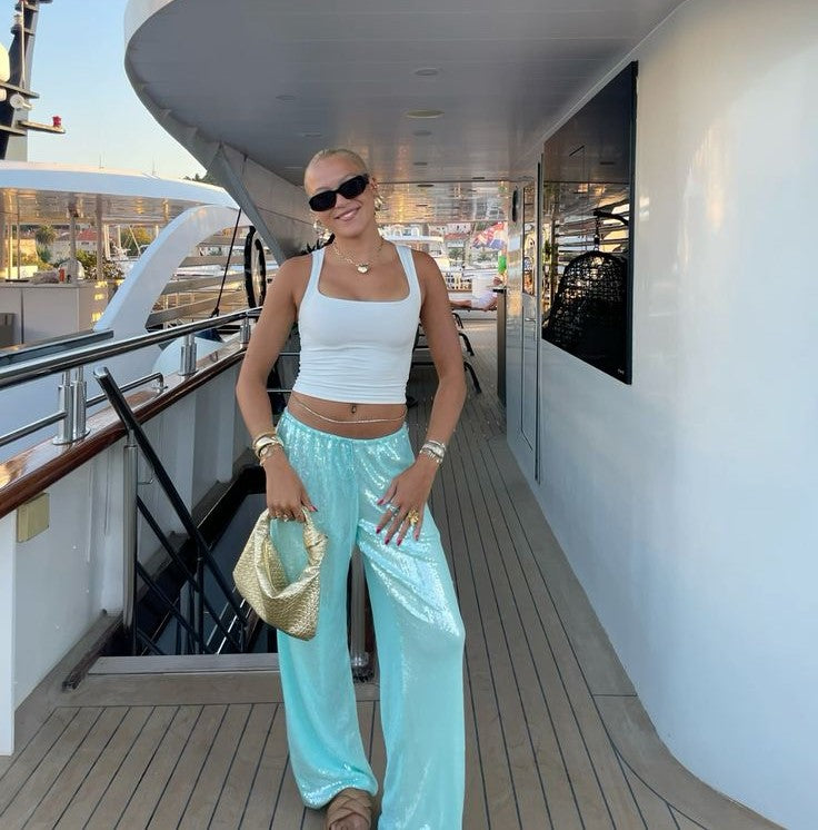 Command attention with every move in these bold, high-shine sequin pants. Drenched in sparkle from top to bottom, they’re made for the spotlight. Whether you're hitting the dance floor or owning the street, these statement-makers are your go-to for unforgettable nights, fearless fashion, and unapologetic style.